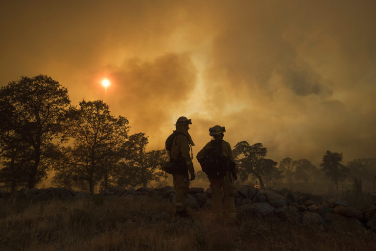 Lesný požiar uväznil deti v letnom tábore neďaleko mesta Santa Barbara v americkom štáte Kalifornia. 9. júl 2017 Foto: SITA/AP