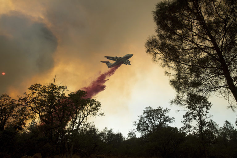 Hasič Jake Hainey bojuje s ohňom blízko Oroville v Californii. 9. júl 2017 Foto: SITA/AP