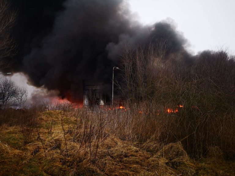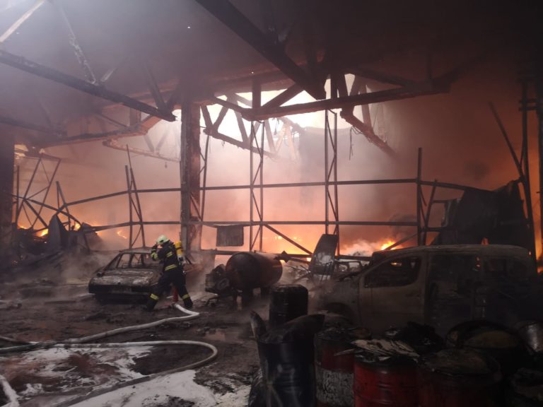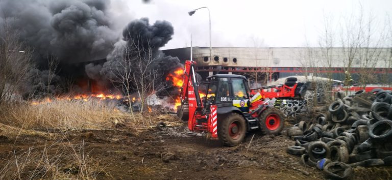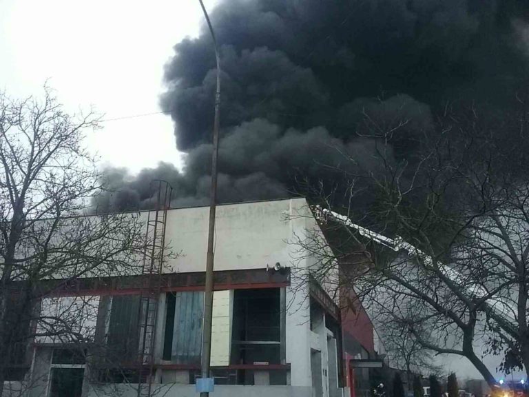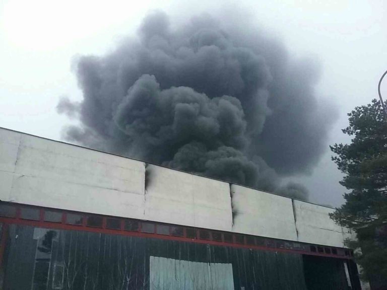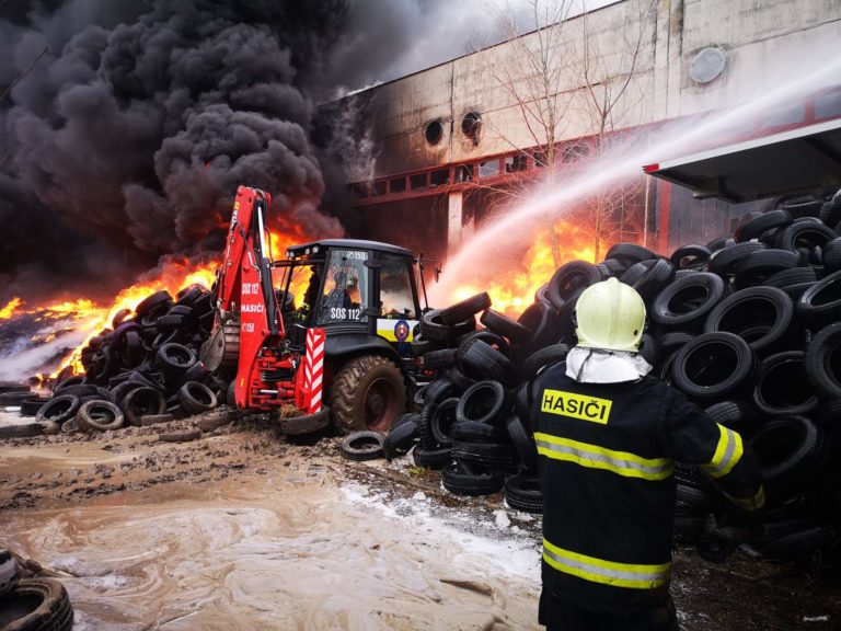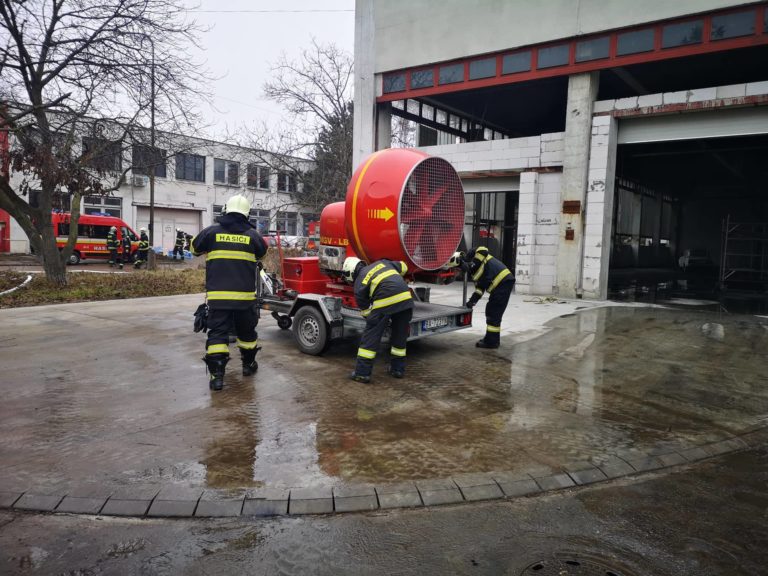 Hustý dym sa valil z miesta požiaru výrobnej haly v Šuranoch. Pracovníci kontrolného laboratória pravidelne merajú množstvo škodlivín vo vzduchu. 28. január 2020 Foto: HaZZ