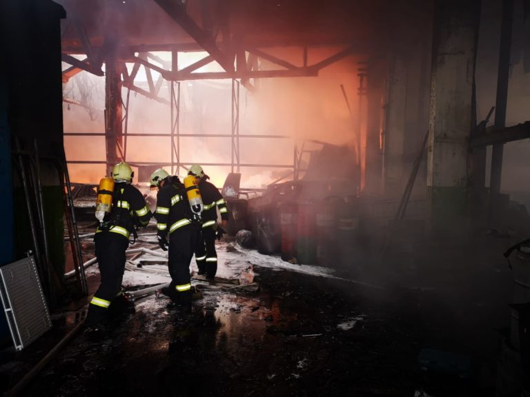 Výrobnú halu v Šuranoch zachvátil požiar. Hasiči likvidovali oheň viac ako 24 hodín. 28. január 2020 Foto: HaZZ