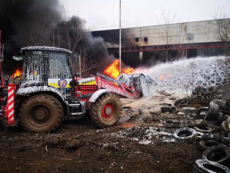 Hasiči museli pri likvidácii požiaru použiť aj hasičskú techniku. 28. január 2020 Foto: HaZZ