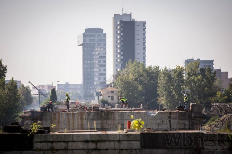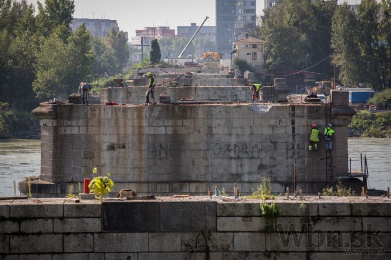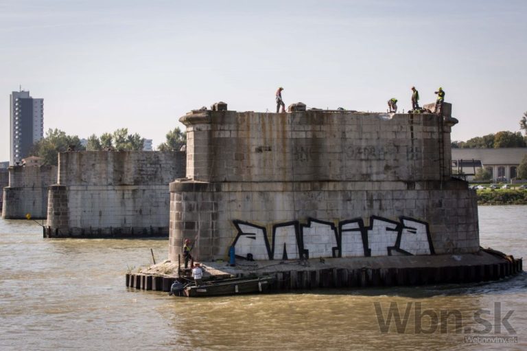 Robotníci začali s rozoberaním piliera Starého mosta. Ide o súčasť obnovenia stavebných prác na rekonštrukcii Starého mosta. Bratislava, 18. september 2014. Foto: SITA/Jozef Jakubčo