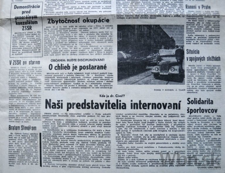Noviny z augusta 1968 venovali problematike invázie náležitú pozornosť. Invázia zmarila všetky nádeje vkladané do obrodného demokratizačného procesu v komunistickej strane, Pražskej jari, s ktorou sa spája predovšetkým meno Alexandra Dubčeka. V noci z 20. na 21. augusta vojaci piatich krajín Varšavskej zmluvy – Bulharska, Maďarska, NDR, Poľska a ZSSR vtrhli na územie Československa. Na „akte internacionálnej solidarity“ sa nepodieľalo Rumunsko.