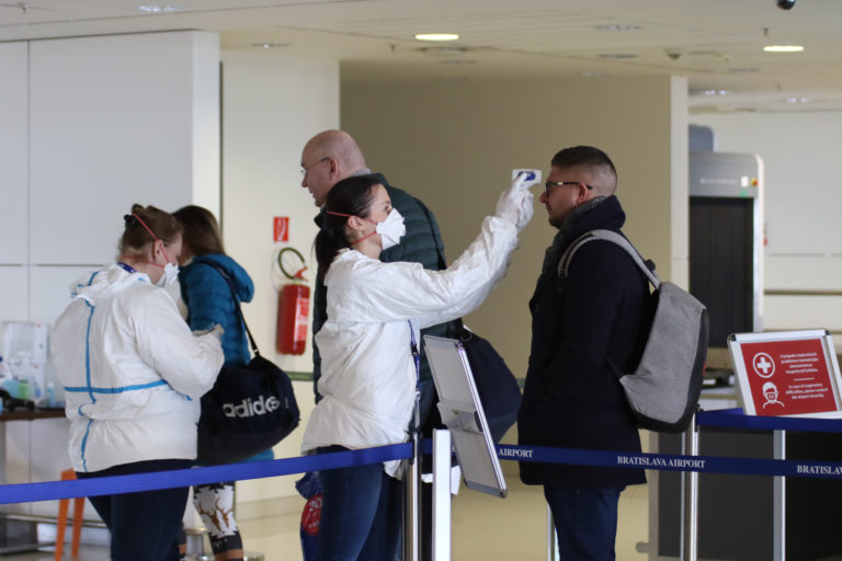 Kontrola zdravia cestujúcich na letisku M. R. Štefánika Foto: SITA/Alexandra Čunderlíková