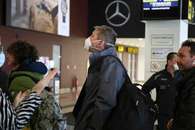Cestujúci počas kontroly na bratislavskom letisku, ide o opatrenie v dôsledku šírenia koronavírusu (COVID-19) vo svete. Foto: SITA/Alexandra Čunderlíková