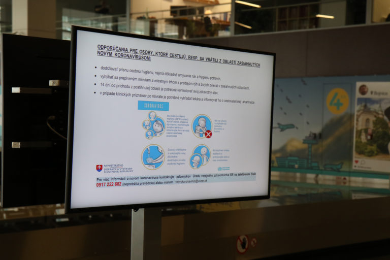 Informačný materiál počas kontroly postupov a práce hygienikov rezortu dopravy ministrom dopravy a výstavby SR v príletovej hale na Letisku M. R. Štefánika v súvislosti so zavedením preventívnych opatrení cestujúcich v dôsledku šírenia koronavírusu (COVID-19) vo svete. Foto: SITA/Alexandra Čunderlíková