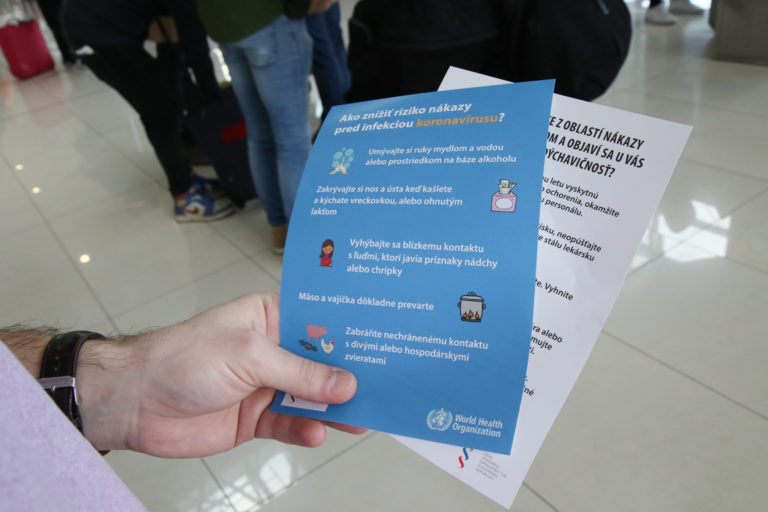 Informačný materiál počas kontroly postupov a práce hygienikov rezortu dopravy ministrom dopravy a výstavby SR v príletovej hale na Letisku M. R. tefánika v súvislosti so zavedením preventívnych opatrení cestujúcich v dôsledku šírenia koronavírusu (COVID-19) vo svete. Bratislava, 28. február 2020. Foto: SITA/Alexandra Čunderlíková