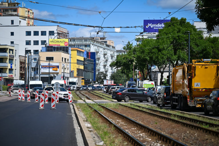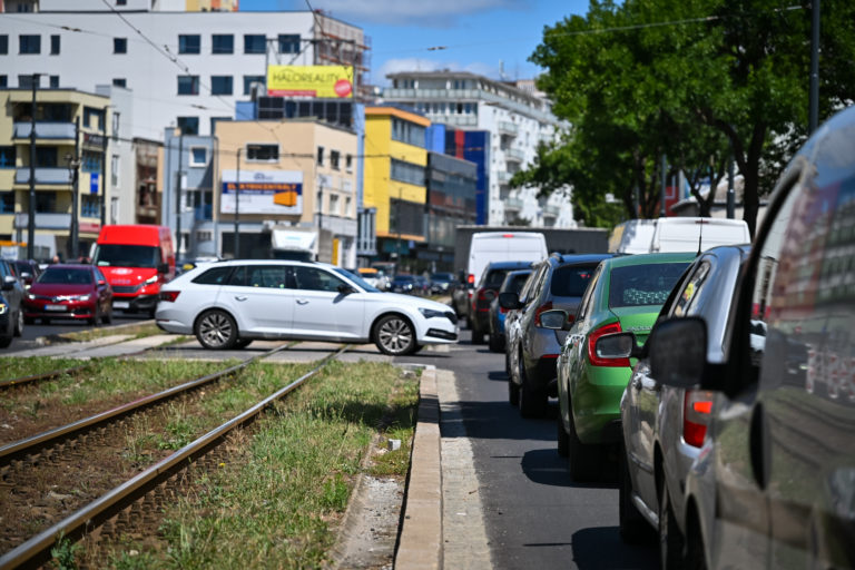 Dopravná zápcha v dôsledku stavebných prác na Račianskej ulici v Bratislave. Bratislava, 4. júl 2024. Foto: SITA