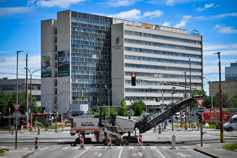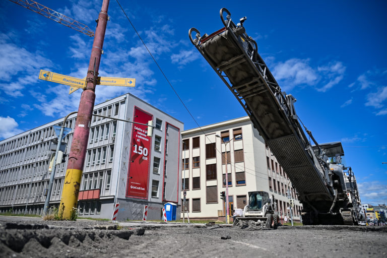 Prebiehajúce stavebné práce na Račianskej ulici v Bratislave. Bratislava, 4. júl 2024. Foto: SITA