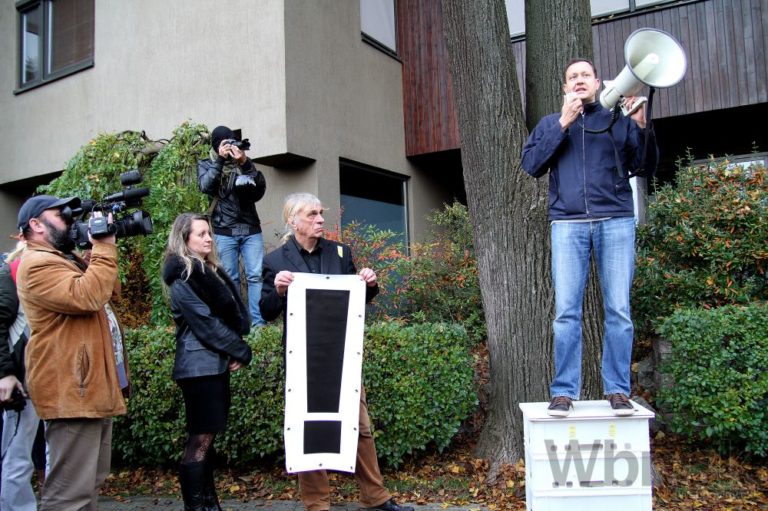 Protestné zhromaždenie za odstúpenie predsedu parlamentu Pavla Pašku sa konalo v košickom mestskom parku pred stavbou, v ktorej býva. Požiadavku vyjadrili protestujúci aj nápisom zo sviečok na prahu objektu. Protest organizoval poslanec NR SR Alojz Hlina v súvislosti s predraženým nákupom CT prístroja a nabaľovaním sa niektorých ľudí v zdravotníctve. Košice, 11. november 2014.