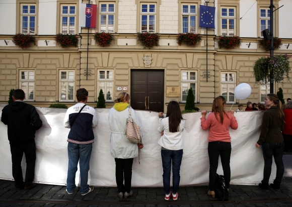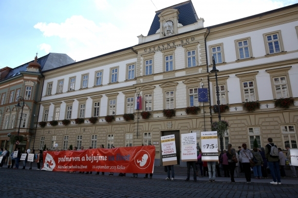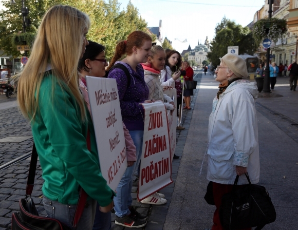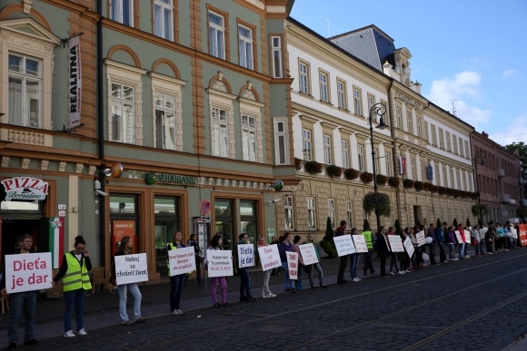 Účastníci podujatia Objatie Ústavného súdu, konajúce sa v rámci príprav na Národný pochod za život, ako jedna zo sprievodných akcíí. Košice, 18. september 2013. Foto: SITA/Miroslav Vacula