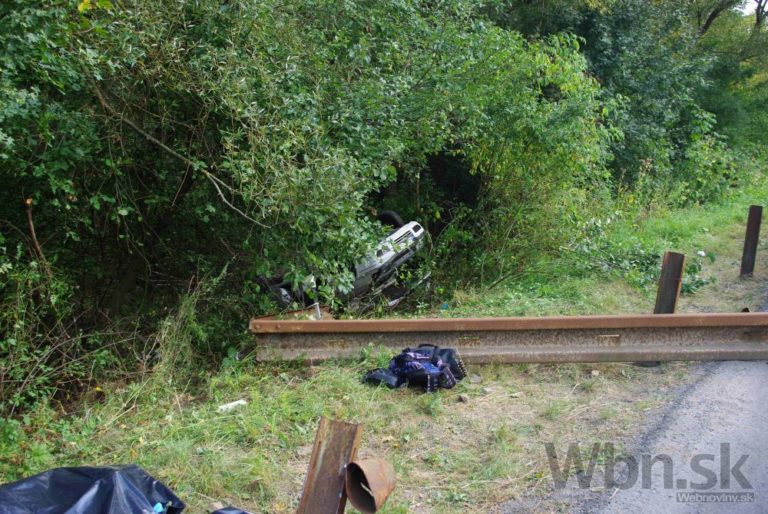 Osemnásťročná vodička osobného auta Škoda Felicia z obce Ličartovce nezvládla predbiehanie iného vozidla, keď bola v protismere začala brzdiť, auto stratilo stabilitu a narazilo do zvodidiel. Po tom, čo auto preletelo cez zvodidlá do lesa, zostalo prevrátené na streche. Mladá vodička a jej 16-ročná spolujazdkyňa z Bajerova zraneniam na mieste podľahli. Foto: SITA/KR PZ Prešov
