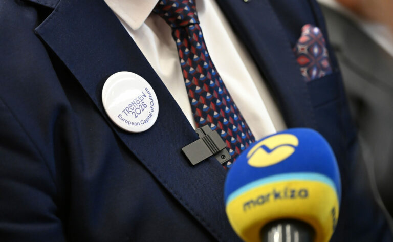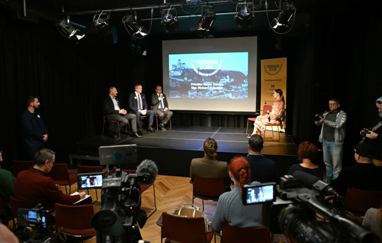 Atmosféra počas tlačovej konferencie pri predstavení programu Európskeho hlavného mesta kultúry Trenčín 2026 v priestoroch kultúrno-kreatívneho centra Hviezda v Trenčíne. Trenčín, 8. november 2024. Foto: SITA/Tomáš Somr
