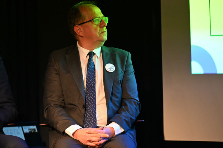 Riaditeľ Trenčín EHMK 2026 Ján Sudzina počas tlačovej konferencie pri predstavení programu Európskeho hlavného mesta kultúry Trenčín 2026 v priestoroch kultúrno-kreatívneho centra Hviezda v Trenčíne. Trenčín, 8. november 2024. Foto: SITA/Tomáš Somr