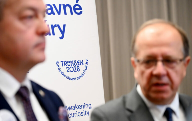Sprava: Primátor mesta Trenčín Richard Rybníček a predseda Trenčianskeho samosprávneho kraja Jaroslav Baška počas tlačovej konferencie pri predstavení programu Európskeho hlavného mesta kultúry Trenčín 2026 v priestoroch kultúrno-kreatívneho centra Hviezda v Trenčíne. Trenčín, 8. november 2024. Foto: SITA/Tomáš Somr