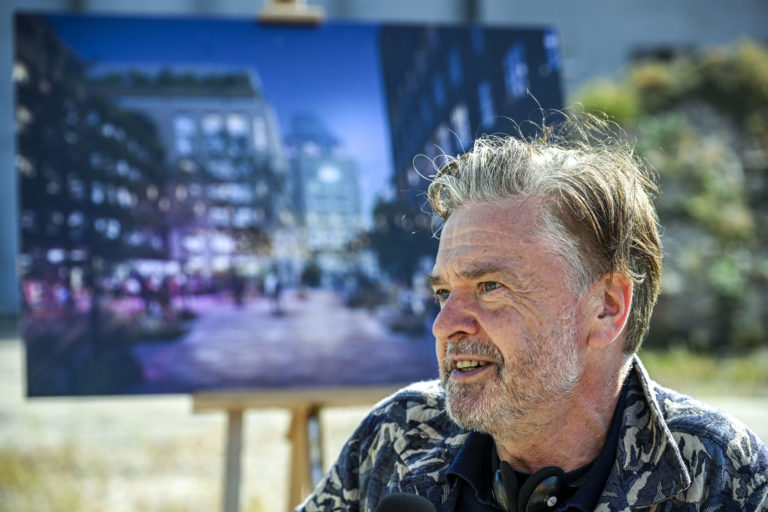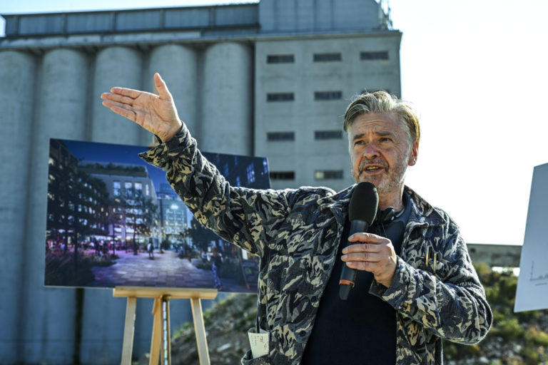 Kreatívny riaditeľ ateliéru Gehl Architects David Sim, Brownfield Palma predstavuje koncept Novej Palmy v rámci revitalizácie bývalého závodu Palma. Bratislava, 3. október 2023. Foto: SITA/Milan Illík
