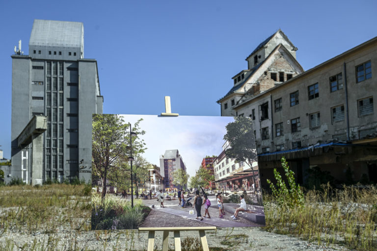 Vizualizácia konceptu Novej Palmy v areáli bývalého závodu Palma. Bratislava, 3. október 2023. Foto: SITA/Milan Illík