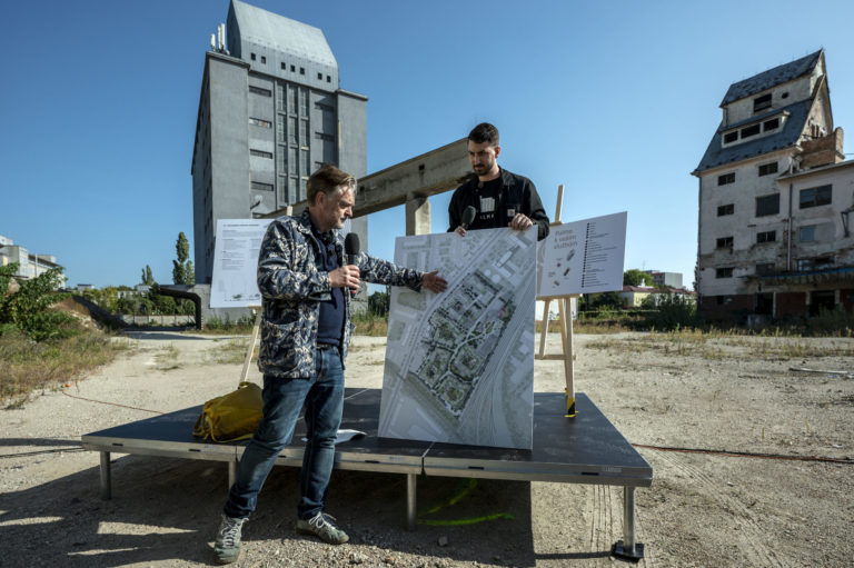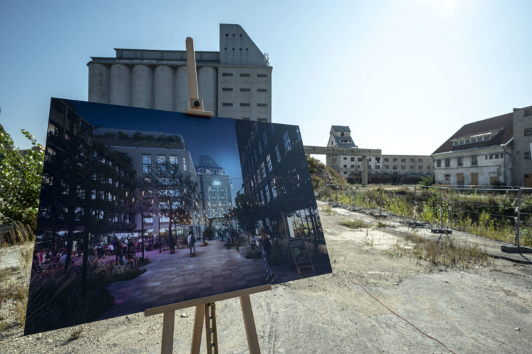 Areál bývalého závodu Palma počas revitalizácie a predstavenia konceptu Novej Palmy. Bratislava, 3. október 2023. Foto: SITA/Milan Illík