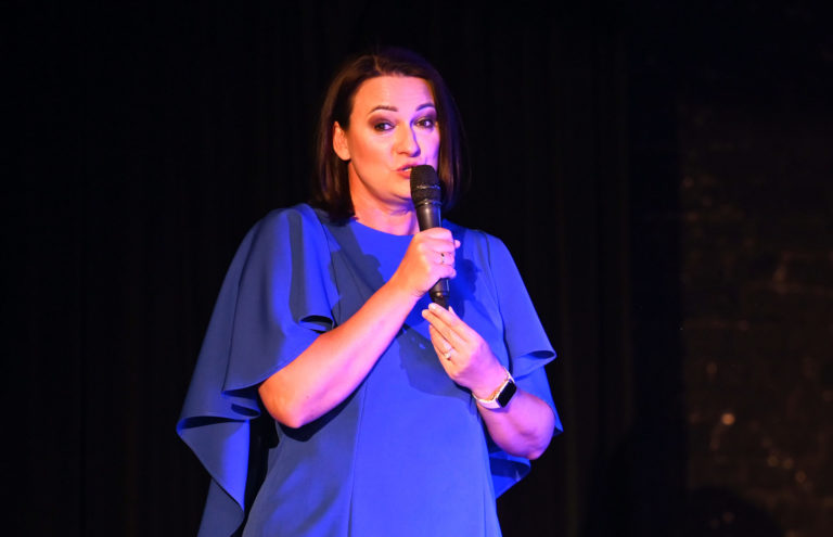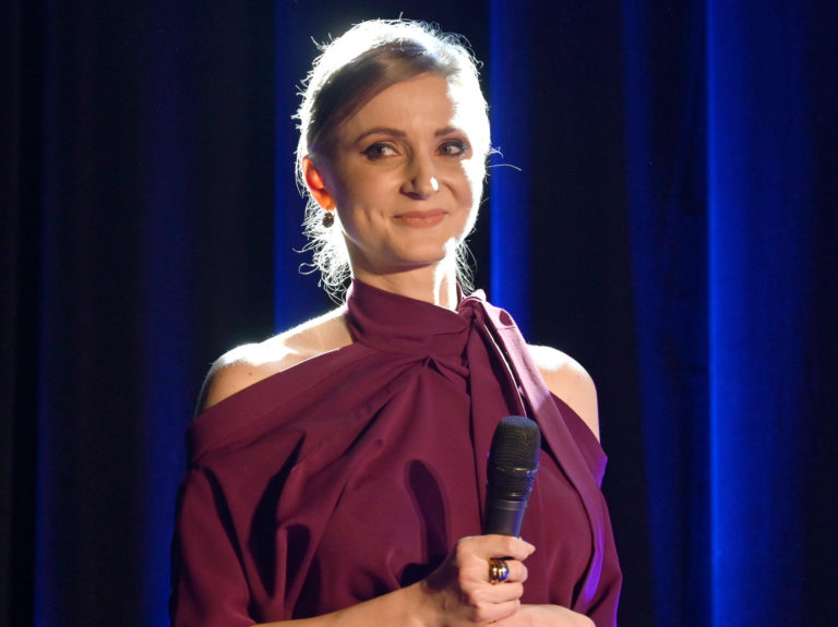 Autorka myšlienky Zuzana Fabianová počas slávnostného predstavenia uniforiem slovenských sestier v košickom Kulturparku, ktorého cieľom je prezentácia vzniku a realizácie myšlienky vytvorenia novej a jednotnej pracovnej uniformy pre slovenské sestry. Košice, 2. marec 2023. Foto: SITA/Viktor Zamborský