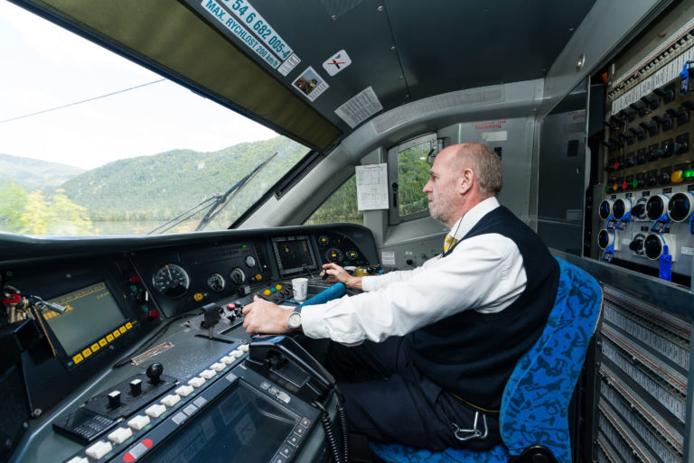 Strojvedúci Jaromír Michálek v kokpite prvej modernizovanej jednotky vo vlaku SC 241 Pendolino Košičan. Žilina, 25. september 2017. Foto: SITA/Milo Fabian