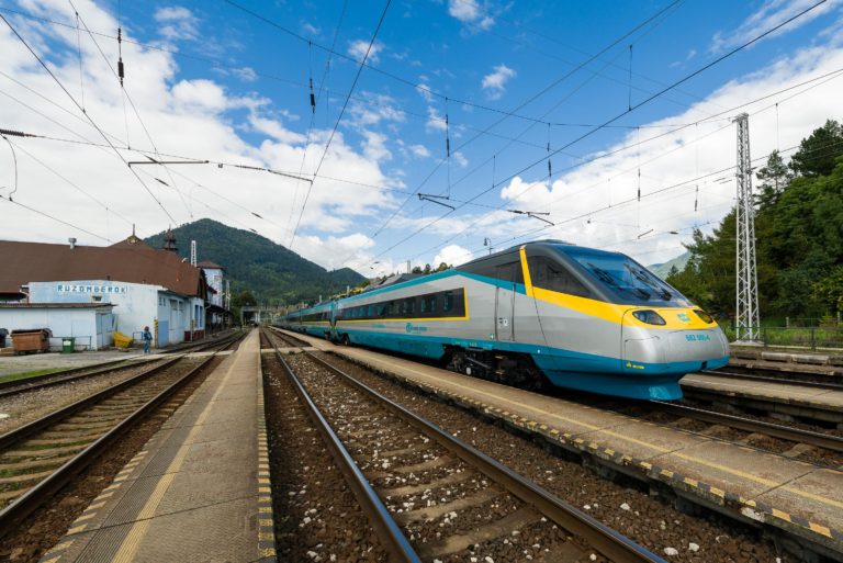 Súprava modernizovaného vlaku SC 241 Pendolino Košičan vychádza zo stanice Ružomberok. Ružomberok, 25. september 2017. Foto: SITA/Milo Fabian