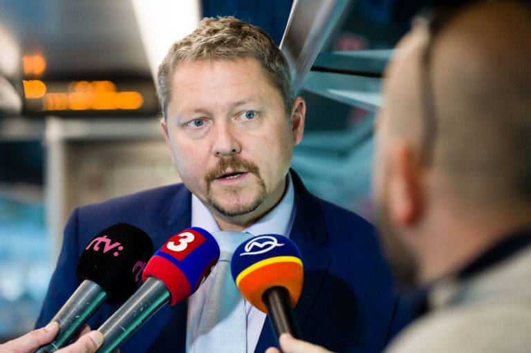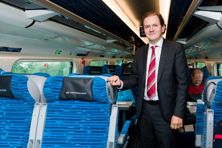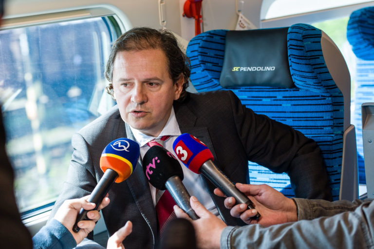 Člen predstavenstva Českých dráh zodpovedný za osobnú dopravu Michal Štepán počas prezentácie prvej modernizovanej jednotky vo vlaku SC 241 Pendolino Košičan. Žilina, 25. september 2017. Foto: SITA/Milo Fabian