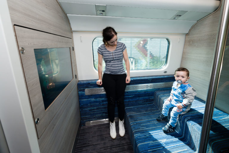 Oddiel detského kina v prvej modernizovanej jednotke vo vlaku SC 241 Pendolino Košičan. Žilina, 25. september 2017. Foto: SITA/Milo Fabian
