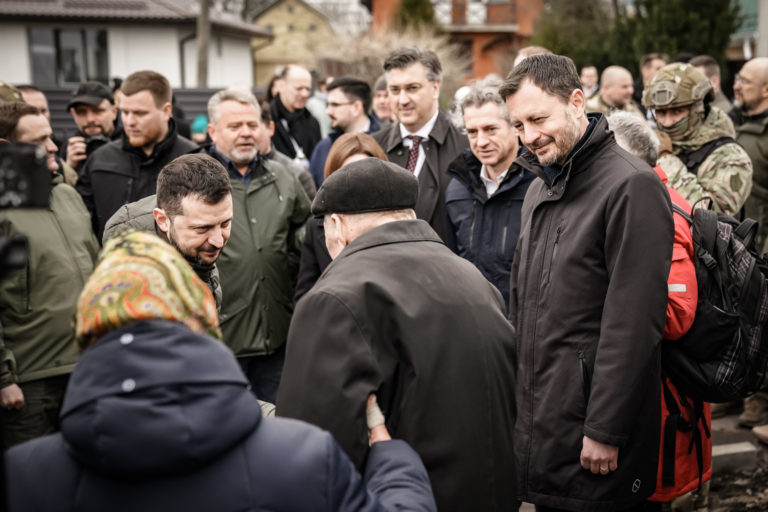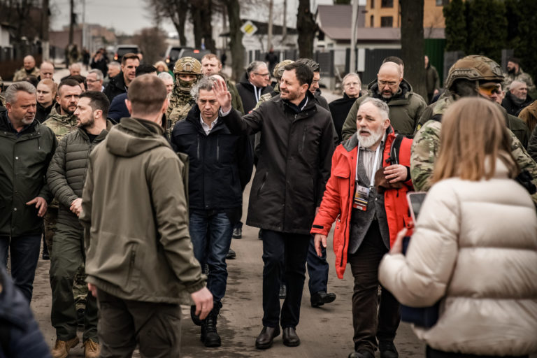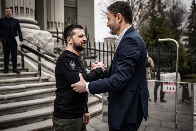 Slovenský premiér Eduard Heger počas návštevy Ukrajiny (31. marec 2023). Foto: SITA/Úrad vlády SR.