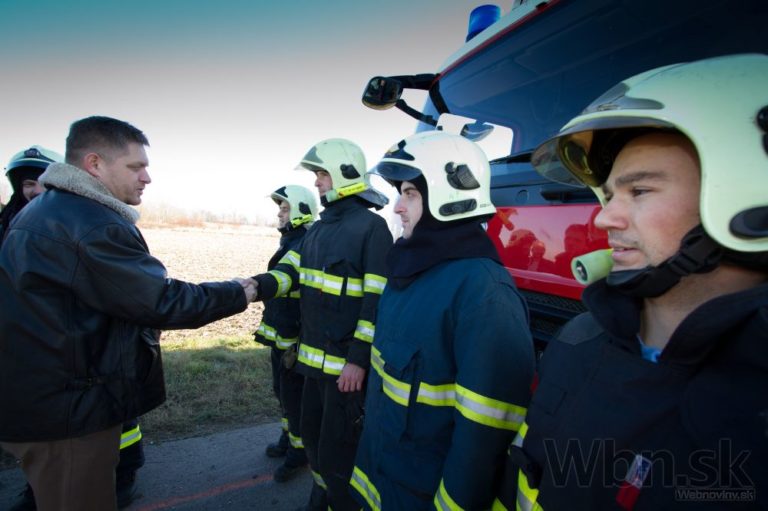 Premiér Robert Fico (vľavo) počas zásahu hasičov na Štedrý deň pri dopravnej nehode pri Šamoríne. Šamorín, 24. december 2014. Foto: SITA/Ľudovít Vaniher