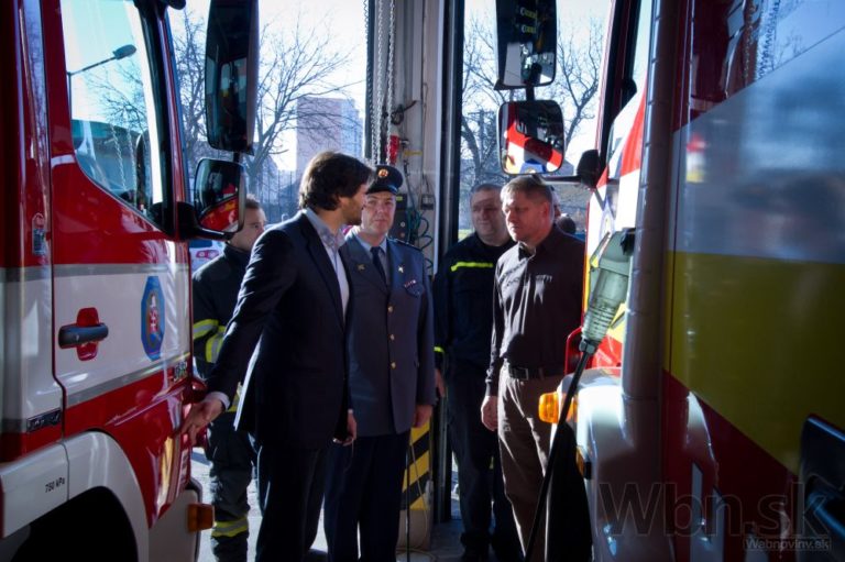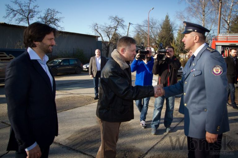 Premiér Robert Fico (vľavo) počas návštevy službukonajúcich hasičov, stanice Hasičského a záchranného útvaru v Šamoríne. Šamorín, 24. december 2014. Foto: SITA/Ľudovít Vaniher