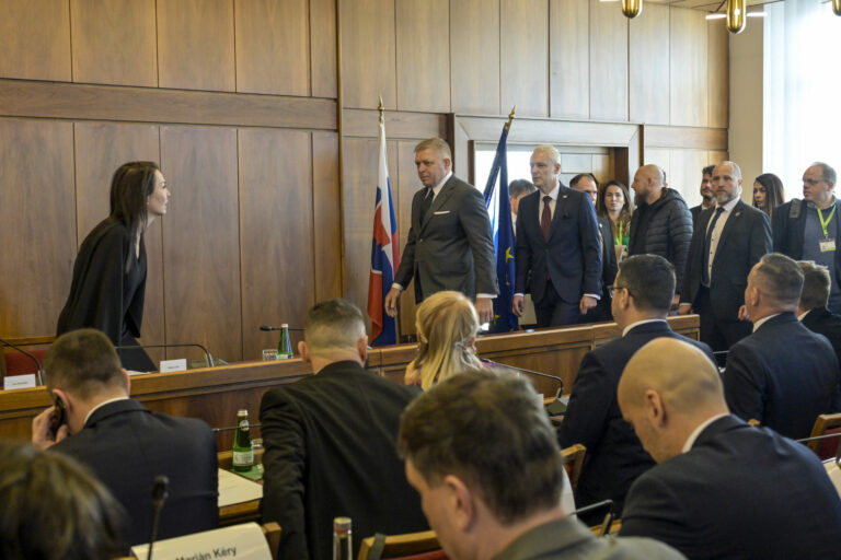 Predseda vlády SR Robert Fico (vľavo) počas zasadnutia Výboru NR SR pre európske záležitosti k stretnutiu premiéra SR Roberta Fica s prezidentom Ruskej federácie Vladimírom Putinom a k ďalším krokom SR, ktoré vyplývajú zo zastavenia tranzitu ruského plynu cez Ukrajinu. Bratislava, 10. január 2025. Foto: SITA/Milan Illík