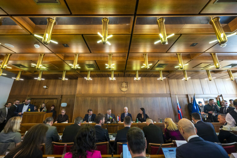 Uprostred zľava v pozadí: Predseda vlády SR Robert Fico a predseda Výboru NR SR pre európske záležitosti Ján Ferenčák počas zasadnutia Výboru NR SR pre európske záležitosti k stretnutiu premiéra SR Roberta Fica s prezidentom Ruskej federácie Vladimírom Putinom a k ďalším krokom SR, ktoré vyplývajú zo zastavenia tranzitu ruského plynu cez Ukrajinu. Bratislava, 10. január 2025. Foto: SITA/Milan Illík