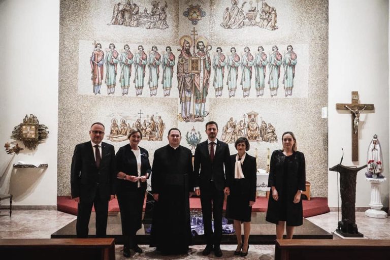 Premiér Eduard Heger na návšteve v Pápežskom slovenskom ústave sv. Cyrila a Metoda. Foto: www.facebook.com