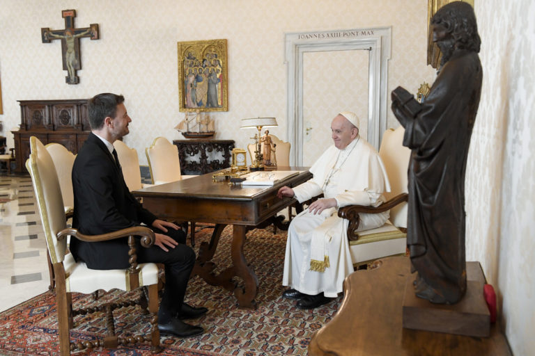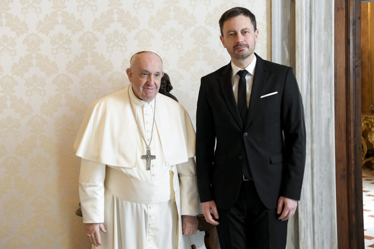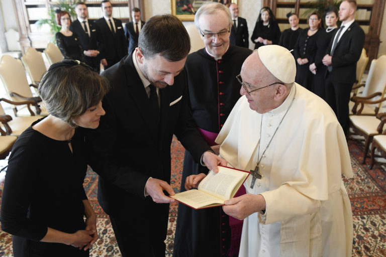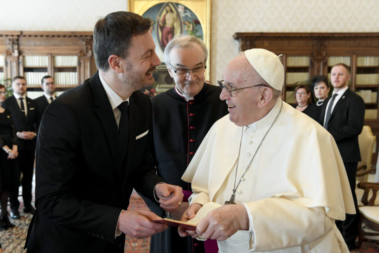 Premiér Eduard Heger sa stretol s pápežom Františkom vo Vatikáne. Foto: Vatican Nrws, www.facebook.com