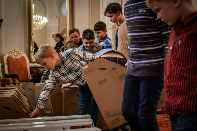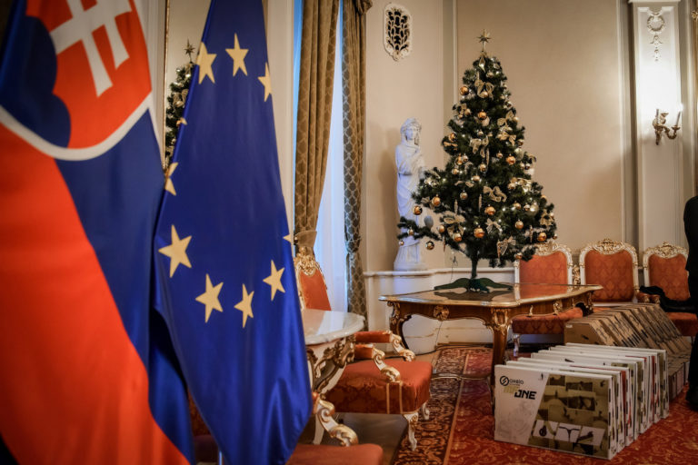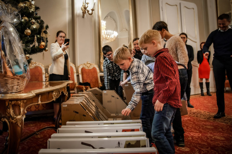 Darčeky pre deti z detského domova v Piešťanoch počas ich prijatia dočasne povereným premiérom na Úrade vlády SR. Bratislava, 24. december 2022. Foto: SITA/Úrad vlády SR.