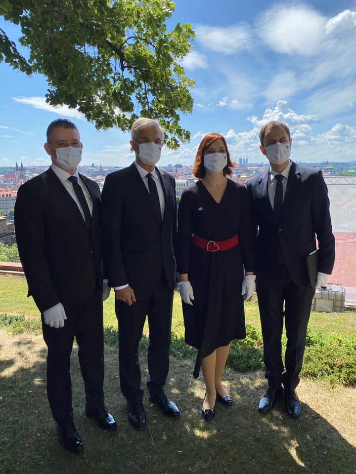Ministri Roman Mikulec, Ivan Korčok, Veronika Remišová a premiér Igor Matovič počas oficiálnej návštevy Českej republiky. 3. jún 2020 Foto: www.facebook.com