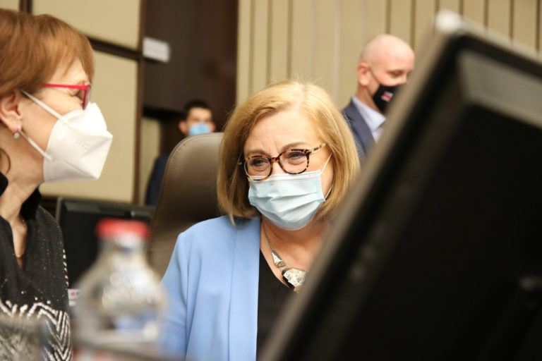 Epidemiologička Mária Avdičová pred rokovaním predsedu vlády SR s vedcami a odborníkmi na COVID-19 v súvislosti s ďalšími krokmi a opatreniami, ktoré pomôžu zlepšiť epidemiologickú situáciu na Slovensku. Bratislava, 23. február 2021. Foto: SITA/Alexandra Čunderlíková