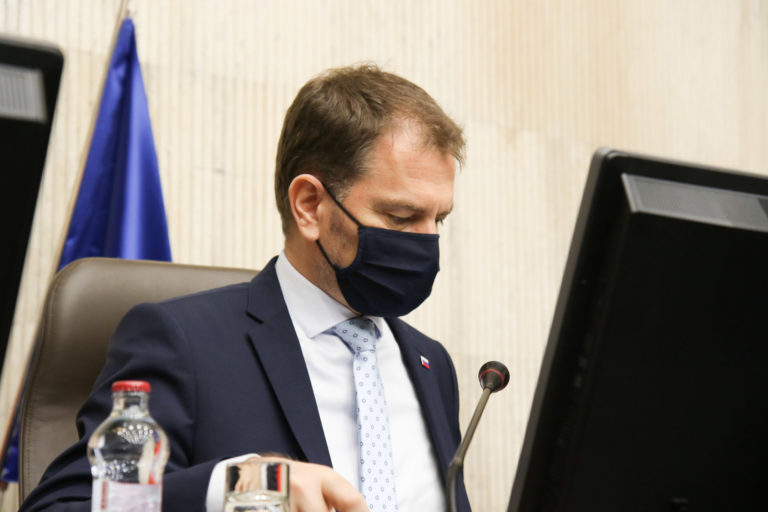Predseda vlády SR Igor Matovič počas rokovania s vedcami a odborníkmi na COVID-19 v súvislosti s ďalšími krokmi a opatreniami, ktoré pomôžu zlepšiť epidemiologickú situáciu na Slovensku. Bratislava, 23. február 2021. Foto: SITA/Alexandra Čunderlíková