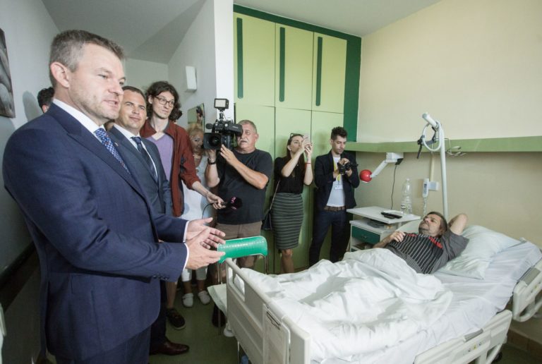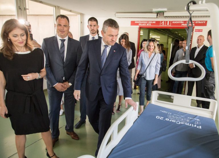 Predseda vlády SR Peter Pellegrini počas návštevy Univerzitnej nemocnice sv. Cyrila a Metoda v Petržalke, kde sa premiér SR informoval o aktuálnom stave obnovy lôžok pre pacientov. Bratislava, 10. september 2018. Foto: SITA/Braňo Bibel