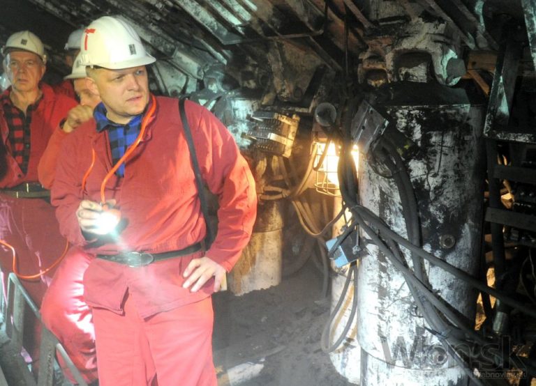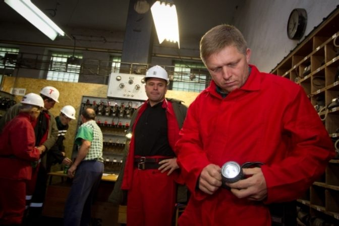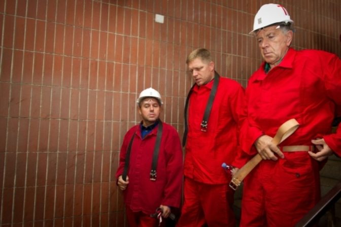 Premiér SR Robert Fico v podzemí v Hornonitrianskych baniach Prievidza v ťažobnom úseku Bane Nováky pri príležitosti regionálnych osláv Dňa baníkov. Nováky, 5. september 2014. Foto: SITA/Martin Havran