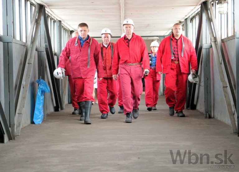 Premiér SR Robert Fico (v popredí) sfáral do podzemia Hornonitrianskych baní Prievidza v ťažobnom úseku Bane Nováky pri príležitosti regionálnych osláv Dňa baníkov. Nováky, 5. september 2014. Foto: SITA/Martin Havran