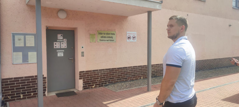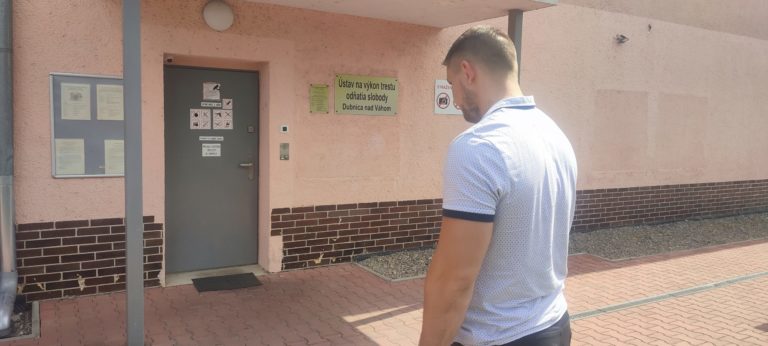 Ústav na výkon trestu odňatia slobody v Dubnici nad Váhom pred prepustením bývalého špeciálneho prokurátora Dušana Kováčika, obvineného za korupciu a vyzradenie utajovaných skutočností, ktorému prerušili výkon trestu do času, kým Najvyšší súd SR rozhodne o dovolaní. Dubnica nad Váhom, 7. august 2024. Foto: SITA/Tomáš Somr