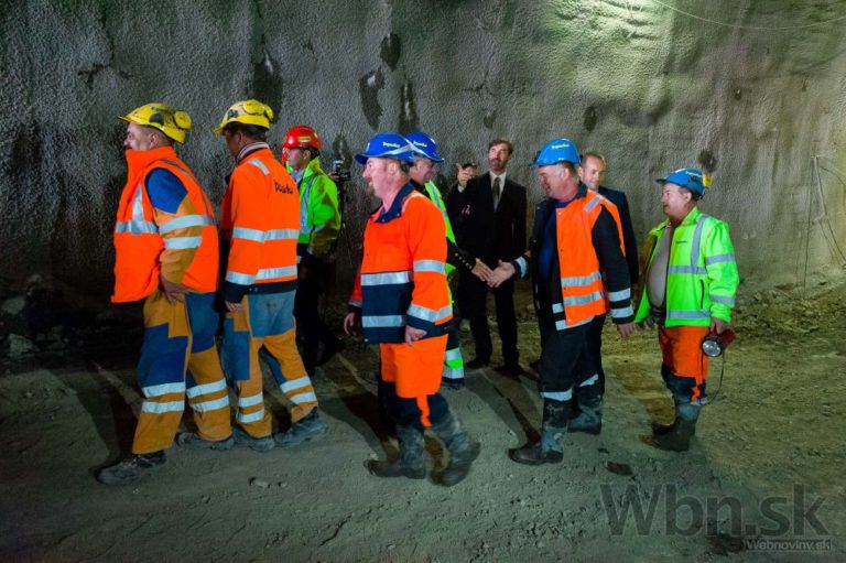 Účastníci slávnostného prerazenia tunela Poľana na úseku diaľnice D3 Svrčinovec - Skalité. Foto: SITA/Milo Fabian