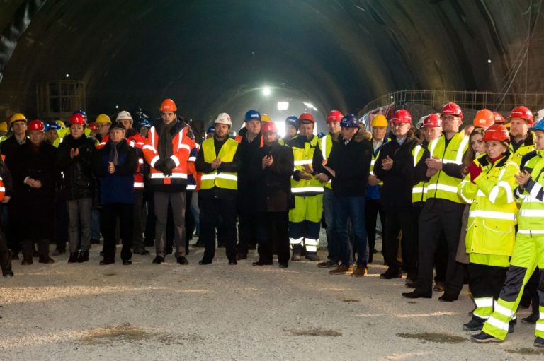 Účastníci počas slávnostného prerazenie tunela Žilina, ktorý je súčasťou diaľnice D1 Hričovské Podhradie - Lietavská Lúčka. Žilina, 5. december 2016. Foto: SITA/Milo Fabian