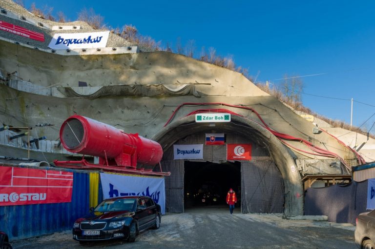 Pohľad na východný portál počas slávnostného prerazenia tunela Žilina, ktorý je súčasťou diaľnice D1 Hričovské Podhradie - Lietavská Lúčka. Žilina, 5. december 2016. Foto: SITA/Milo Fabian