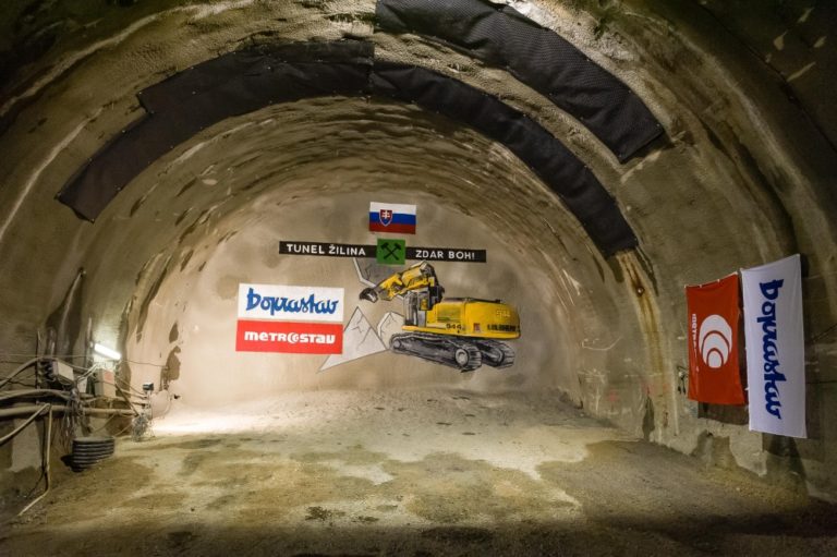 Pohľad na prerazenú stenu počas slávnostného prerazenie tunela Žilina, ktorý je súčasťou diaľnice D1 Hričovské Podhradie - Lietavská Lúčka. Žilina, 5. december 2016. Foto: SITA/Milo Fabian