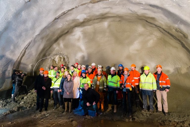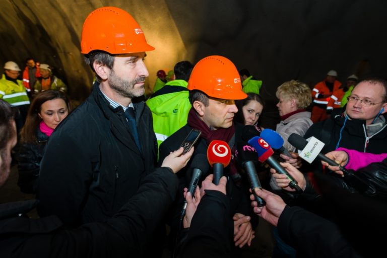 Atmosféra slávnostného prerazenia tunela Považský Chlmec, ktorý je súčasťou diaľnice D3 Žilina, Strážov – Žilina, Brodno. Žilina, 28. január 2016. Foto: SITA/Milo Fabian