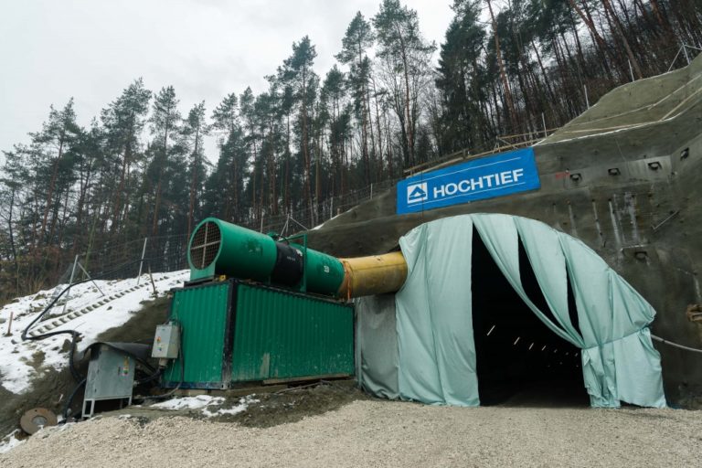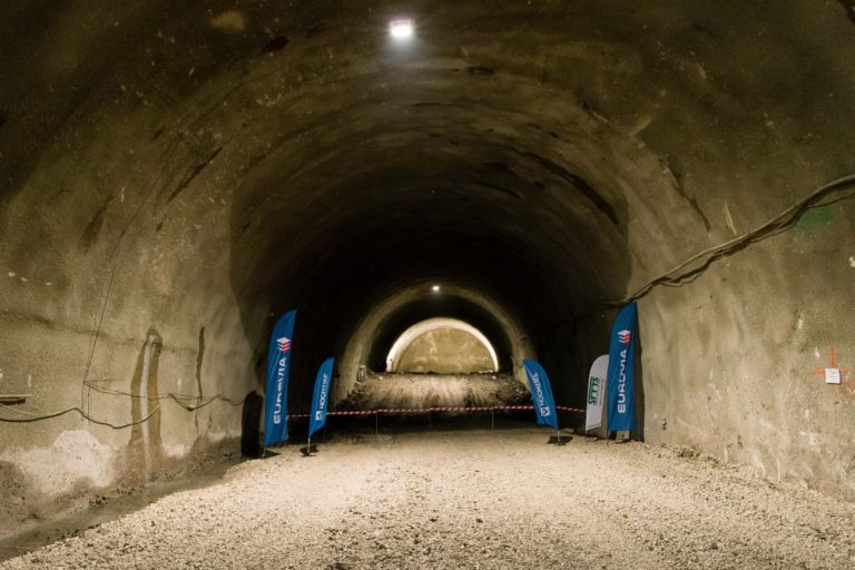 Pohľad na východný portál tunela počas slávnostného prerazenia tunela Považský Chlmec, ktorý je súčasťou diaľnice D3 Žilina, Strážov – Žilina, Brodno. Žilina, 28. január 2016. Foto: SITA/Milo Fabian
