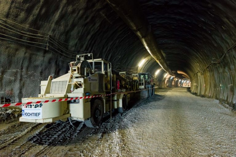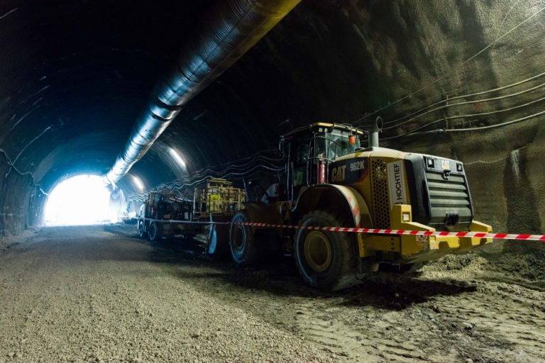 Pohľad na posledný úsek tunela pred prerazením počas slávnostného prerazenia tunela Považský Chlmec, ktorý je súčasťou diaľnice D3 Žilina, Strážov – Žilina, Brodno. Žilina, 28. január 2016. Foto: SITA/Milo Fabian
