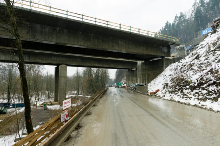 Pohľad na mostné teleso pri východnom portáli tunela počas slávnostného prerazenia tunela Považský Chlmec, ktorý je súčasťou diaľnice D3 Žilina, Strážov – Žilina, Brodno. Žilina, 28. január 2016. Foto: SITA/Milo Fabian